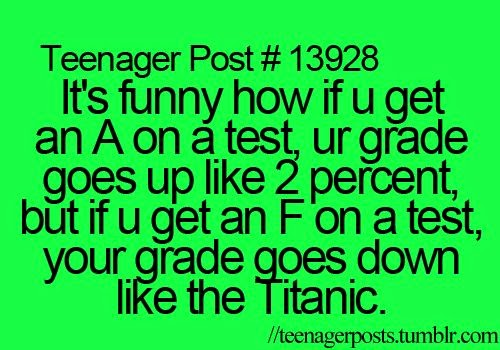 Which brings me to the reason I'm thinking about this so much today. Tuesday had a math test last Thursday. She has been sitting on a 100.56% in math and she informed me when she got in the car that she was sure she failed her test. Failed? Ugh. With Tuesday, in math, failure is subjective. A C is consided a failure to her. A low B is also not usually on her radar. We found out her grade today, 2/10. Two out of ten!! I gave her a stern talking to because no way is a two out of ten anywhere near acceptable. It never matters to me what any of the other kids did on the test, it doesn't matter to me that even her equally smart BFF's failed the test also. Tuesday FAILED? Her 100.56% nose dived to a 95.66%. Thank the dear Lord Jesus Christ that this teacher allows full credit retakes!!
